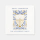 Add a personal touch to your Hanukkah Table with these elegant floral paper napkins featuring watercolor Menorah adorned with elegant wheat foliage in a sophisticated palette of gold, light blue, and navy blue with two lines of custom text.