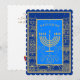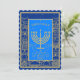 Happy Hanukkah Beautiful Jewish Holiday Greeting Card / Invitation. Jewish Holiday Hanukkah Vintage Jerusalem gold frame, navy blue background with traditional Chanukah symbols - Gold Menorah, Hanukkiah Candelabrum and Candles, wooden dreidels (spinning top), doughnuts, star of David and glowing lights wallpaper pattern. Hanukkah Festival Decoration. Jerusalem, Israel. Invitations & Stationery, Greeting Cards, Postcards, beautiful card with two sides graphic decoration. Card Design with custom text template. Vintage design. Personalise them by adding or change invitation text.
