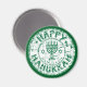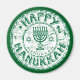 Round magnet with an image of a green grunge Happy Hanukkah, a menorah, and two Stars of David on white with a green border. See the entire Hanukkah Magnet collection under the HOME category in the HOLIDAYS section.