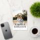 Stylish, elegant and personalised; featuring your photo with handwritten styled type accented by hand drawn pine leaves and berries. The back features a festive snow pattern.