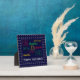 This is a colourful festive desktop plaque with faux silver Star of David in a subtle pattern against a deep blue background. The words LOVE JOY PEACE including their Hebrew translations are colour-coded in red, yellow and green. The text is customisable in case you wish to change anything. HAPPY HANUKKAH is written in faux silver and is also customisable. This is part of the HANUKKAH Collection, which has other matching items so you can create some awesome Hanukkah gift sets.