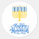 Happy Hanukkah Menorah Classic Round Sticker. Choose the size of the sticker from the options menu.