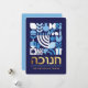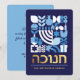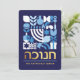 Hanukkah / Chanukah Blue White Modern Geometric Pattern Card with Faux Gold Foil. Menorah, Dreidel, Donuts, Stars & Olive oil... They are all here. Hebrew & Jewish Hanukkah Symbols + Space to add your personalized text on the front & reverse. Happy Hanukkah wishes. Hebrew on the front says "Chanukah". This upscale, beautiful, look, is a great way to wish friends, family, and clients, a very Happy Hanukkah/Chanukah. If you want to see a variation of this design please message us or email BestDressedBread@gmail.com.