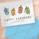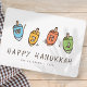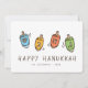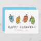 Design is composed of Dreidel spinning top illustration. Add your name, greeting, and year