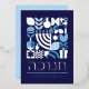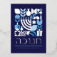 Hanukkah / Chanukah Blue White and elegant Real SIlver Foil. Modern Geometric Pattern Card with Menorah, Dreidel, Doughnuts, Stars  & Olive oil...  Hebrew & Jewish Hanukkah Symbols + Space to add your personalised text on the front & reverse.  Happy Hanukkah wishes.  Hebrew on the front says "Chanukah".  This upscale, beautiful, look, is a great way to wish friends, family, and clients, a very Happy Hanukkah/Chanukah.  If you want to see a variation of this design please message us or email BestDressedBread@gmail.com.