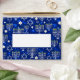 This Hanukkah holidays design features a sparkling blue background with menorah and star of David overlay. #hanukkah #chanukah #holidays #seasonal #festive #modern #blue #menorah #starofdavid #jewish #stylish #elegant #chic #pattern #custom #candles #envelopes #stationery #mail #mailingaccessories #invitations #stylish #elegant #fashion #fashionable #trendy #trending #style #popular