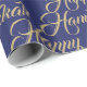 Happy Hanukkah faux gold and navy blue modern elegant script pattern gift Wrapping Paper.