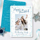 “Happy Hanukkah.” This year, it’s time to get together with your family and friends to celebrate Hanukkah and usher in the festival of lights. Fun, whimsical navy blue handwritten script typography, Star of David and turquoise teal blue hand drawn Hanukkah dreidels and sparkles, along with the photo of your choice, overlay a white background. Your brief custom note (or leave blank if desired), a white hand drawn Star of David and additional sparkles on turquoise blue adorn the back. Feel the warmth and joy of the holiday season when you send out this fun, playful, modern, personalized photo Hanukkah greeting card. Make this Hanukkah one to remember!