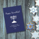Happy Hanukkah Blue Holiday greeting card, with a simple white menorah and script typography design. With white customisable lettering, you can add your own information. A festive way to send well wishes to friends and loved ones.