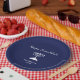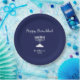 Happy Hanukkah Blue Holiday party paper plate, with a simple white menorah and script typography design. With white customisable lettering, you can add your own information. A festive way to celebrate with friends and loved ones.