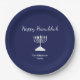 Happy Hanukkah Simple Menorah Blue Paper Plate