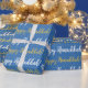 Shades of blue, baby blue, and white with a Jewish Religion theme for gift wrapping supplies. Happy Hanukkah White, Blue, and Gold Wrapping Paper.