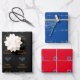 Three different designs for Hanukkah wrapping paper. Red, Black and Blue backgrounds.