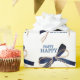 A "HAPPY HAPPY BIRTHDAY" message in a vintage old-style font with a blue satin and twine bow repeated pattern paper.
