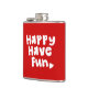 Well made flask, a little better than I had expected. Flask came in clear plastic box which gave it a nice presentation when I took it out of the zazzle packaging. Image is not printed on flask but on sticker. Don't know how this will hold up I haven't used it yet. This would make a Great gift! I plan to purchase more for friends! Cheers. I thought a little brighter than computer. Very crisp, writing wasn't