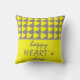 Happy Heart`s Day Yellow and Grey Heart Pattern Valentine`s Day Pillow