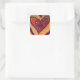 A small purple heart is enclosed by a red heart that is within orange hearts. The hearts are outlined in green, purple, and red. The watercolor background is a soft yellow with colourful confetti dots. A light layer of gold and red glitter traces the heart edges. Painting detail from Inspirational Word "Happy" artwork. Customise the heart art painting love stickers with your text to make it a personalised hearts sticker gifts for someone special to how your love!