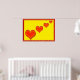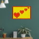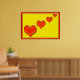 Four red happy hearts on yellow background. Framed in red.