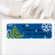 Personalise with name and address. Snowflakes on a blue background with a Christmas tree.