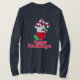 Candy canes Christmas stocking or boot t-shirt reads Happy Holidays. Designed by Sarah Trett.