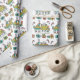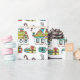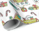 Happy hand-drawn holiday houses and gifts adorn this whimsical wrapping paper.