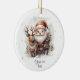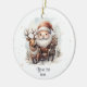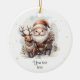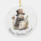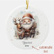 Celebrate the magic of Christmas and add some charm to your holiday decor with this stunning double-sided round ornament. On one side the keepsake features a cheerful snowman design paired with the customisable phrase: Happy Holiday Season (that you can edit and personalise according to your liking), on the flip side you'll find a beautifully crafted watercolor illustration of Santa Claus riding his sleigh through a serene winter landscape, accompanied by space for customisable text to make it truly your own. Add your name or a place or a date.