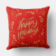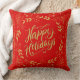 Happy Holiday Typography Gold Glitter Leafs Frame Cushion
