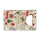 Seamless Happy Holidays design Christmas symbols - snowflakes, deer, calendar, Christmas tree, Christmas gift, skate, hearts, Christmas ornament, Christmas stocking, ribbon - decoration on grey background