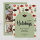 Happy Holidays 3 Family Photo Collage Green Arch Holiday Card