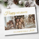 Happy Holidays! 3 Photo, White, Beige-Gold, Minimal Holiday Card.