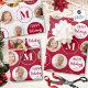 Happy Holidays 6 Photos Monogram Red White Wrapping Paper Sheet
