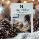 Happy Holidays | Black and White Bow with Photo Holiday Card