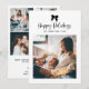 This elegant and chic, black and white Christmas card says "Happy Holidays" in whimsical script. A trendy, black coquette bow and your favourite family photo are featured on the front. The back has a multi photo grid with room for four more photos. A simple and stylish way to wish Merry Christmas to friends and family!