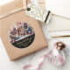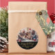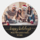 Happy Holidays Black Gold Script Family Photo Classic Round Sticker