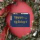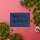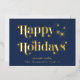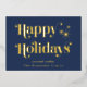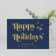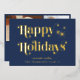 Elegant blue Christmas greeting card featuring "Happy Holidays" showcased in stylish typography and your name in classic serif typography, all rendered in your choice of genuine gold or soil foil. On the back, add two photos and your personalised seasonal greeting.