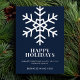 Create your own modern minimalist business holiday cards featuring your custom thank you to clients and customers. Features personalised message in simple typography with snowflake design on blue colour background.