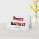 Happy Holidays text in red and black buffalo plaid design with cardinal bird on pine bough for Christmas