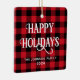 Happy Holidays Buffalo Plaid Family Photo Ceramic Ornament