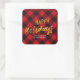 Happy Holidays Buffalo Red Plaid and Gold Foil Square Sticker
