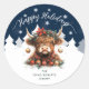 Happy Holidays Business Festive Highland Cow Classic Round Sticker
