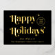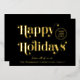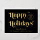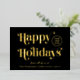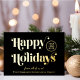 Elegant black corporate business Christmas card for your customers, clients, employees, etc., featuring "Happy Holidays" showcased in stylish typography, your logo, a seasonal greeting and your company name rendered in your choice of genuine gold, silver or rose gold foil.