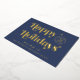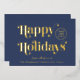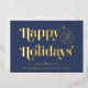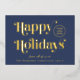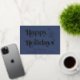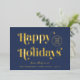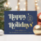 Elegant blue corporate business Christmas card for customers, employees, affiliates, etc., with "Happy Holidays" written in stylish serif typography, your logo, a seasonal greeting and your company name rendered in real gold, silver or rose gold foil.