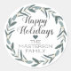 Happy Holidays Christmas Eucalyptus Wreath Classic Round Sticker