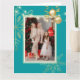 Happy holidays Christmas invitation gold ornaments, snowflakes, stringed lights, elegant modern Christmas holiday custom green thank you card.