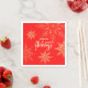 Happy holidays Christmas gold ornaments, gold snowflakes custom red paper napkin.