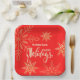 Happy holidays Christmas gold snowflakes, red Paper Plate