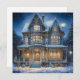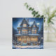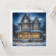 Seasonal winter house illuminated on a snowy night personalised Christmas card.