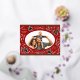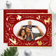 Happy Holidays Christmas Photo Woodland Doodle Foil Holiday Postcard Foil Christmas Postcard features your favourite photo surrounded by cute woodland animals and winter floral elements and all tied together with a whimsical coquette bow with the text "Wishing you a happy holiday" in modern typography on a red background and personalised with your family name. On the reverse add your custom message. Perfect for family and friends for Christmas and the holidays. Created by Evco Studio www.zazzle.com/store/evcostudio