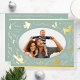 Happy Holidays Christmas Photo Woodland Doodle Foil Holiday Postcard Foil Christmas Postcard features your favourite photo surrounded by cute woodland animals and winter floral elements and all tied together with a whimsical coquette bow with the text "Wishing you a happy holiday" in modern typography on a pastel green background and personalised with your family name. On the reverse add your custom message. Perfect for family and friends for Christmas and the holidays. Created by Evco Studio www.zazzle.com/store/evcostudio