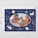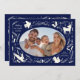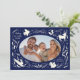 Happy Holidays Christmas Photo Woodland Doodle Holiday Card Christmas Card features your favourite photo surrounded by cute woodland animals and winter floral elements and all tied together with a whimsical coquette bow with the text "Wishing you a happy holiday" in modern typography on a blue background and personalised with your family name. Perfect for family and friends for Christmas and the holidays. Created by Evco Studio www.zazzle.com/store/evcostudio